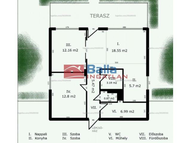67 m² terület 2 + 2 félszoba
