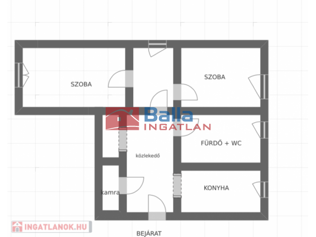 57 m² terület 2 szoba