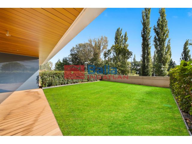 A lakás déli fekvésű, kilátása a saját kertre és a patakpart fáira nyílik, így különleges intimitást és nyugalmat kínál, mivel közvetlen szomszédos épület vagy ablak nincs a közelben. A lakáshoz 83 m² kizárólagos használatú kültér tartozik, amely magában foglal egy 16 m²-es fedett teraszt és egy 67 m²-es kertet – ritkaságnak számít ebben az épületben.