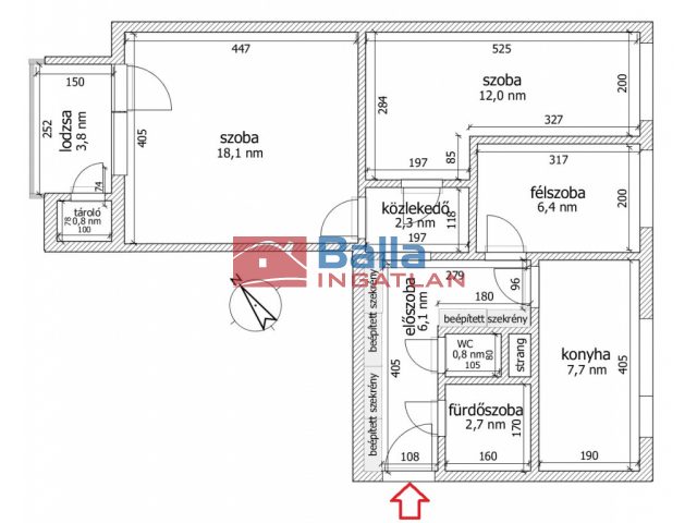 Egyéb tulajdonságok: tehermentes, azonnal költözhető, loggia (4 m²), kamra, külön wc, utcai parkolás