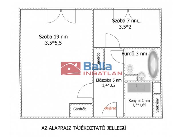 35 m² terület 1 szoba