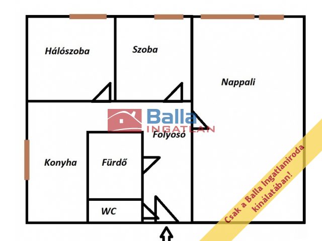58 m² terület 1 + 2 félszoba