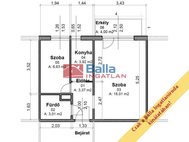 37 m² terület 1 + 1 félszoba