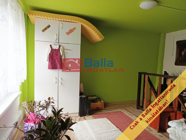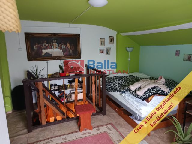 2 szoba alul + 1 nagy szoba felül, előszoba, konyha (étkezős), fürdőszoba, külön wc.