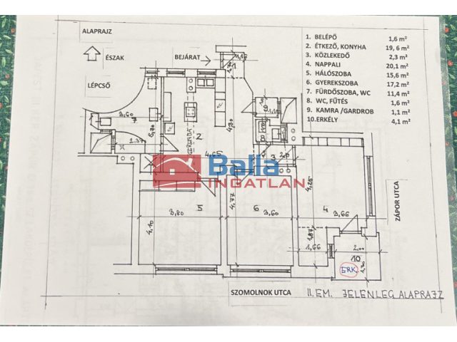 Egyéb tulajdonságok: tehermentes, azonnal költözhető, erkély (5 m²), kamra, külön wc, utcai parkolás