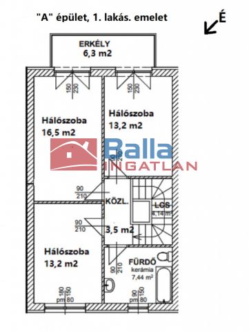 Az emeletre három, külön bejáratú hálószobát és egy WC-vel is ellátott, kádas fürdőszobát találunk. Az emelet NEM tetőtéri kialakítású, hanem teljes értékű! E szint felett még egy tekintélyes méretű, tárolásra alkalmas padlást találunk; a tetőt modern betoncseréppel van fedve, a födém kőzetgyapot szigeteléssel rendelkezik.