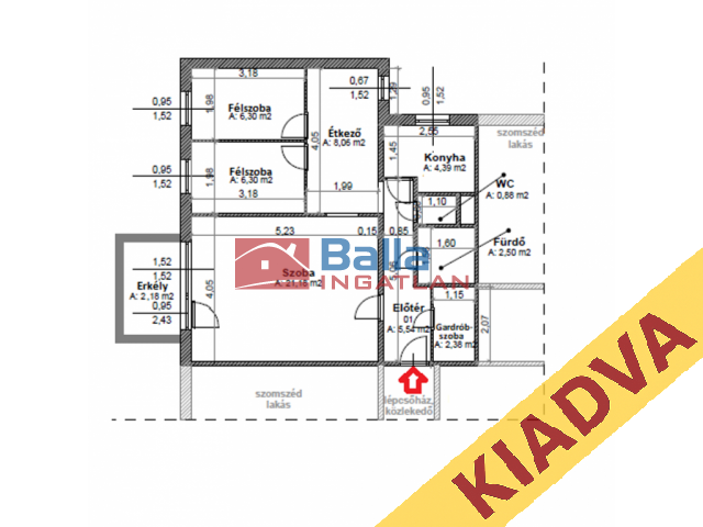 Egyéb tulajdonságok: tehermentes, erkély (4 m²), gardróbszoba, külön étkező, külön wc, lift (1 db), utcai parkolás